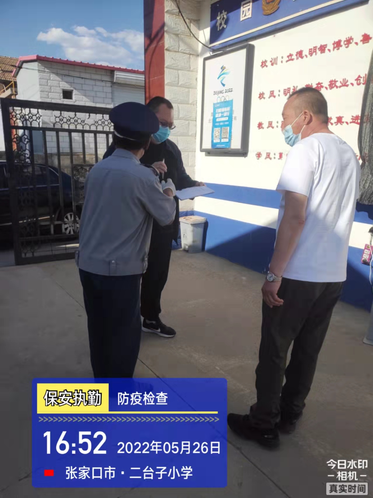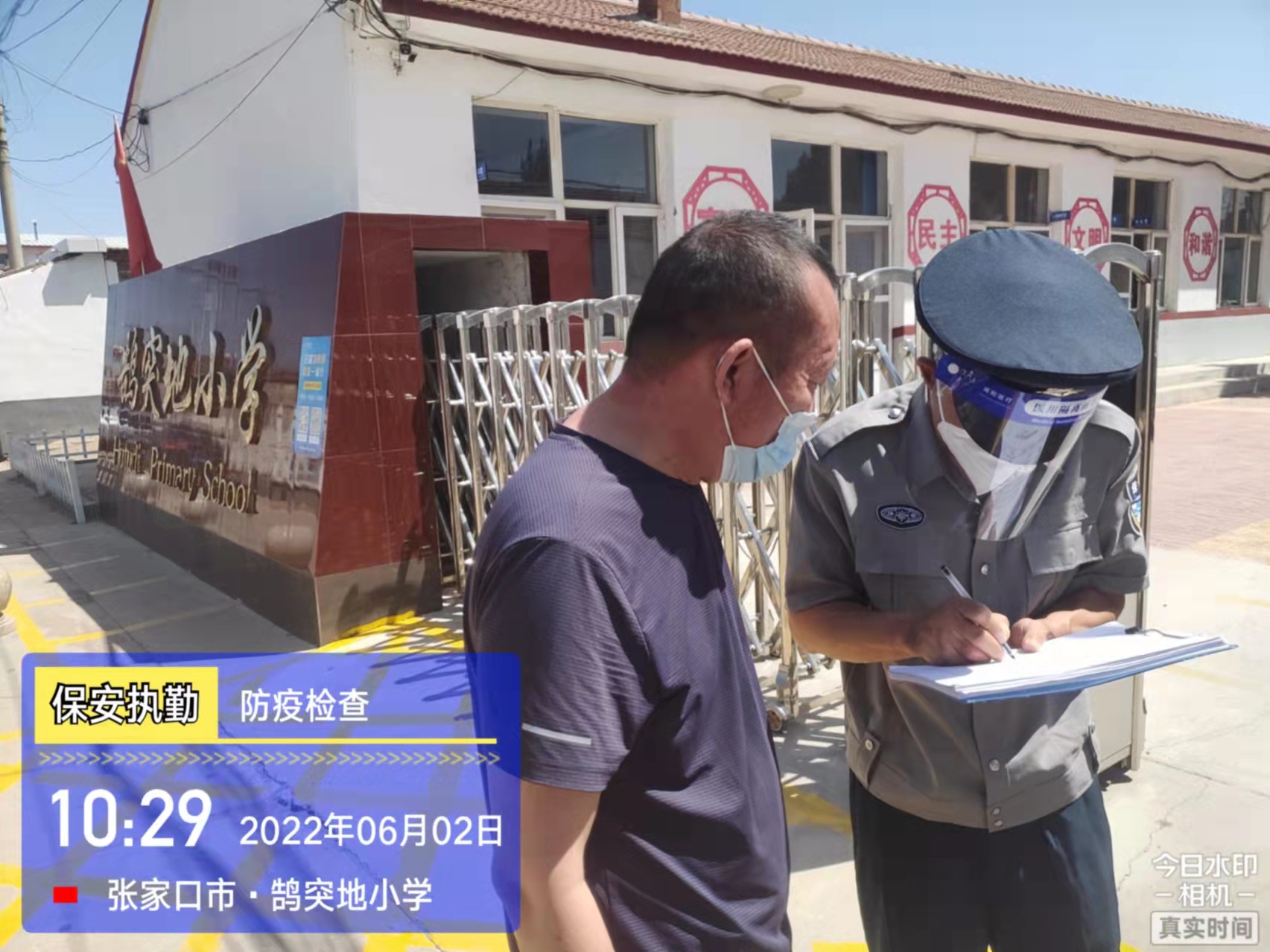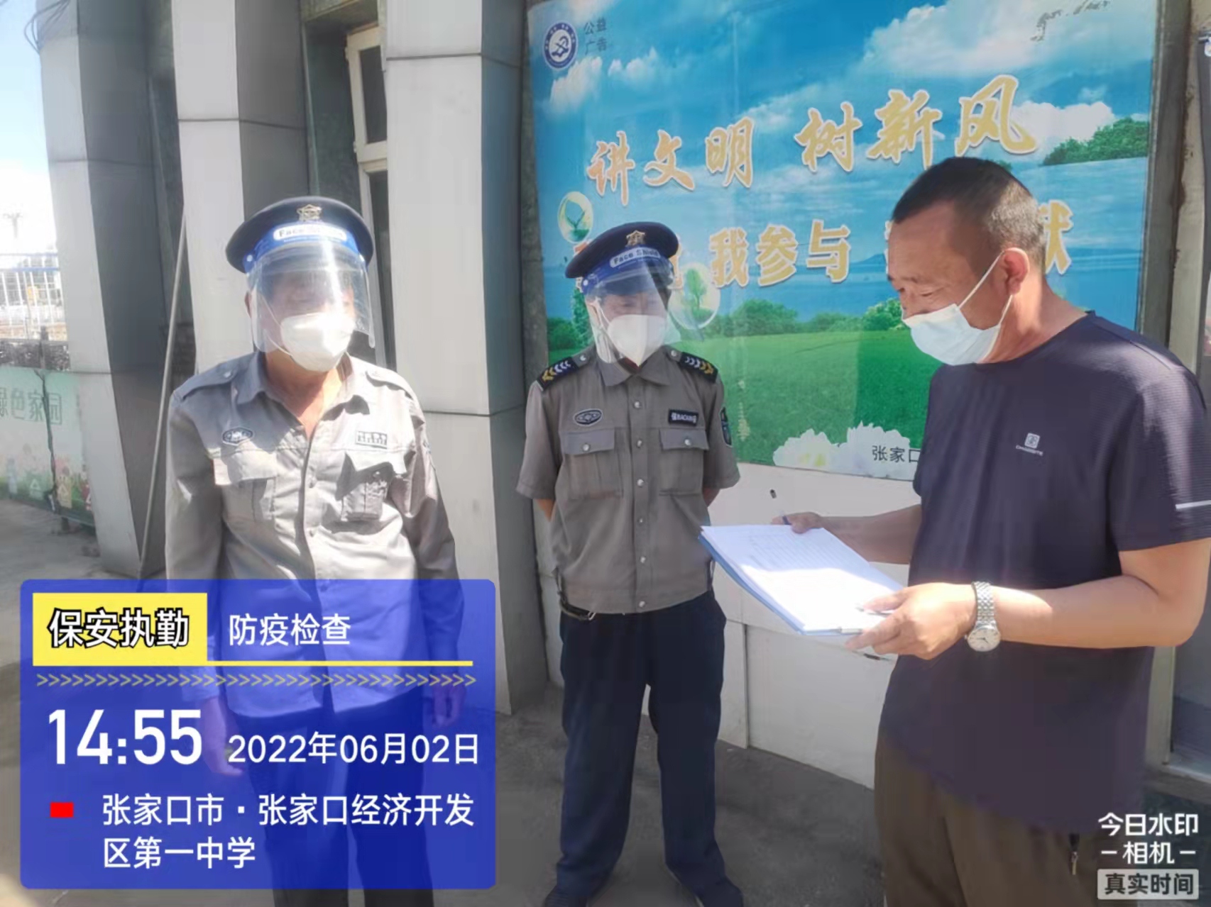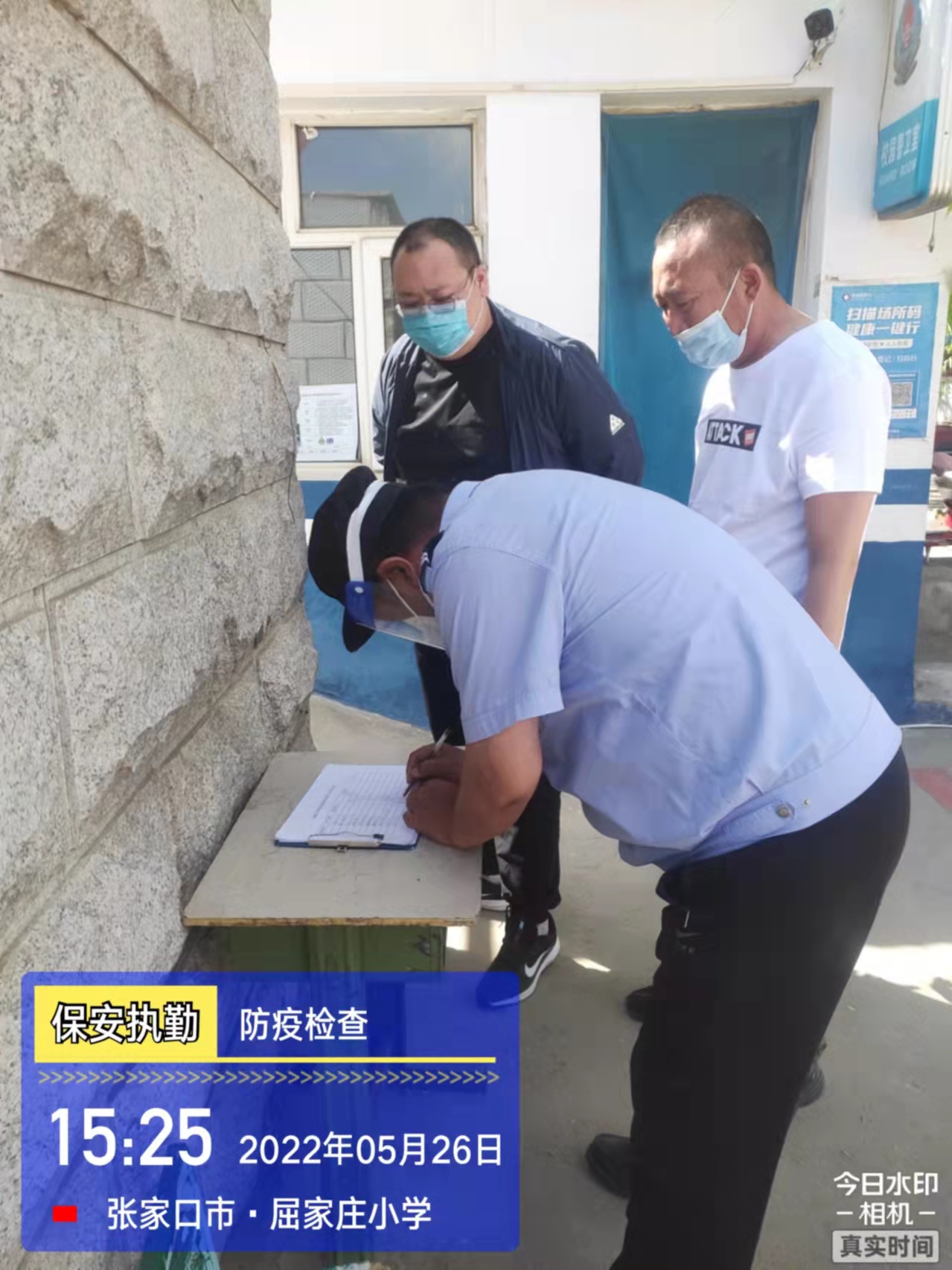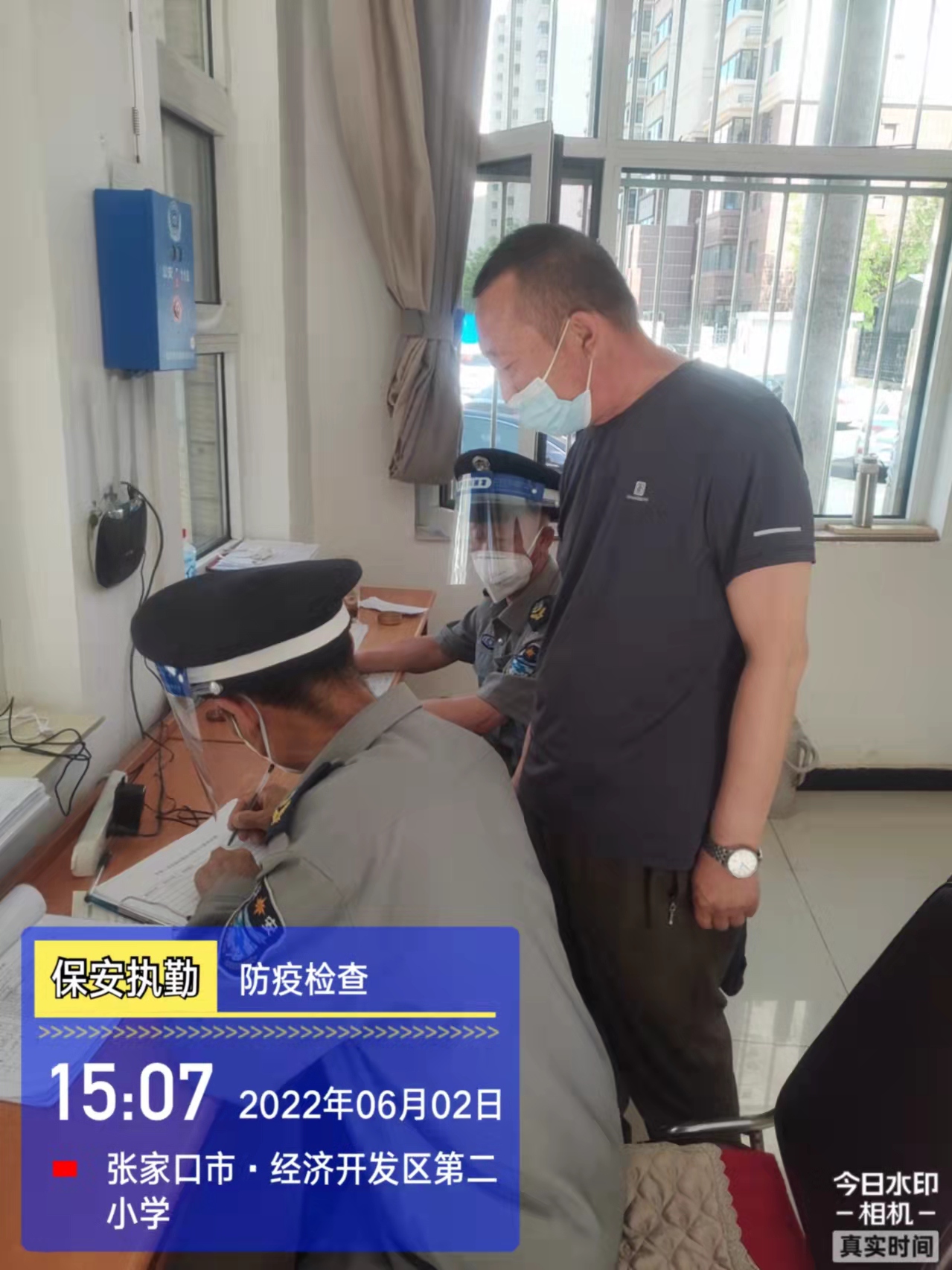 会后,我公司迅速召开“疫情期间学校门卫安全防控工作要求”的会议,制定了校园安全防疫规定:疫情防控期间,校园保安队员必须穿制服,规范佩戴“三件套”(防护隔离面罩、N95口罩、一次性PVC手套);进出校园的师生必须测量体温,外来人员需登记、测温、扫码(幸福张家口,呈绿码)、且持7日内核酸阴性检测结果;保安室需保持干净整洁,物品摆放有序,勤开窗通风,定期喷洒消毒药水。为此,公司特成立校园防疫检查小组,由副经理带队,协同主管大队长对经开区所有中小学校安保岗位进行防疫工作检查,检查期间,发现问题,现场处理,并及时与校方领导沟通,杜绝同样问题再次出现,确保校园防疫安保工作万无一失,为各校师生铸就一道安全防线!